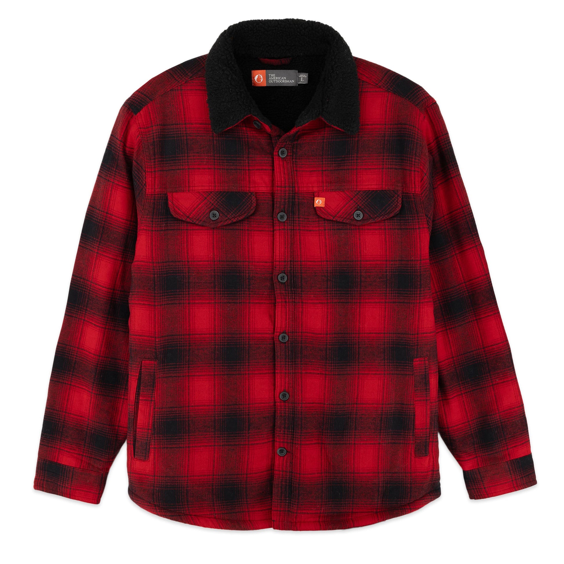 Flannel Shirt Jacket with Sherpa Fleece Lining & Collar