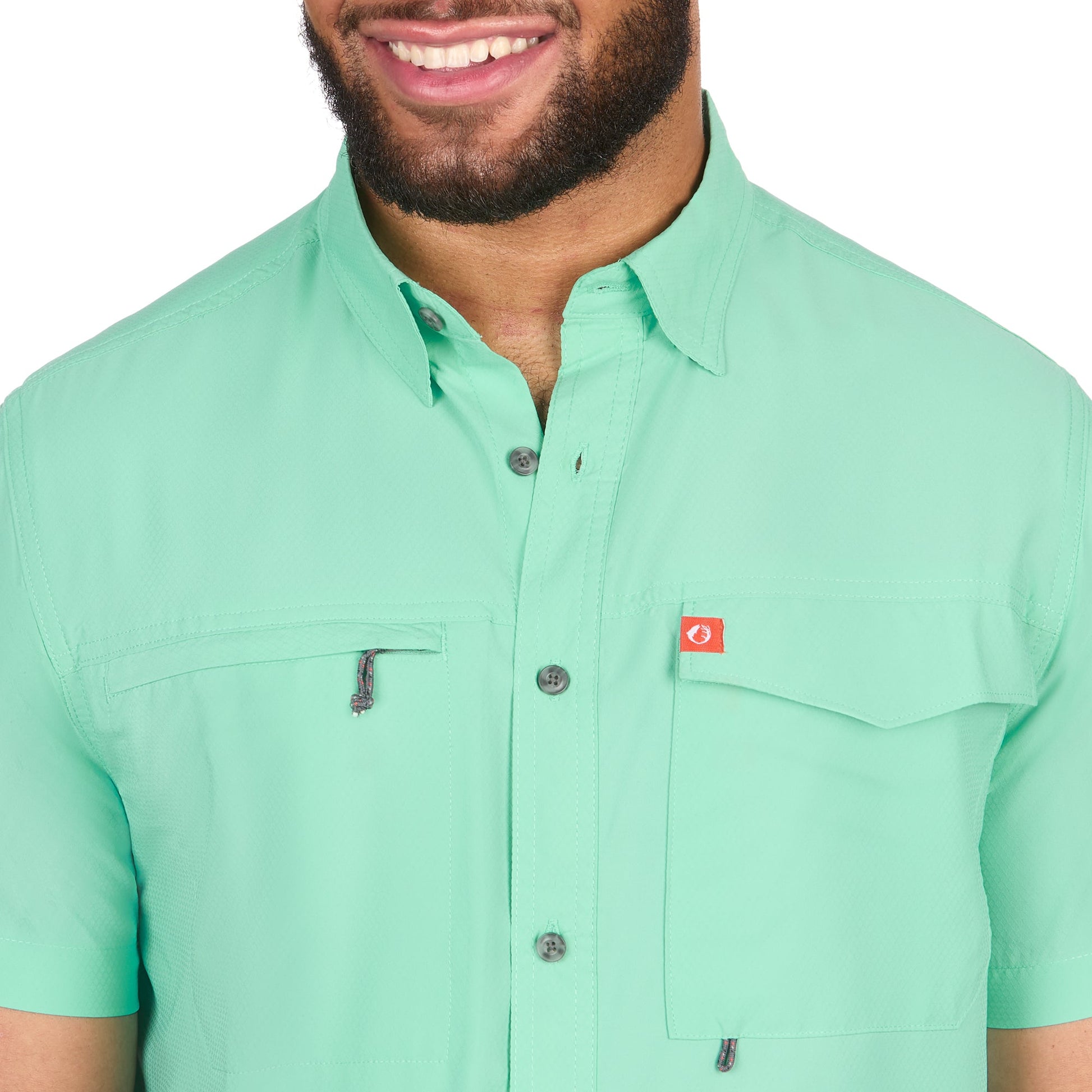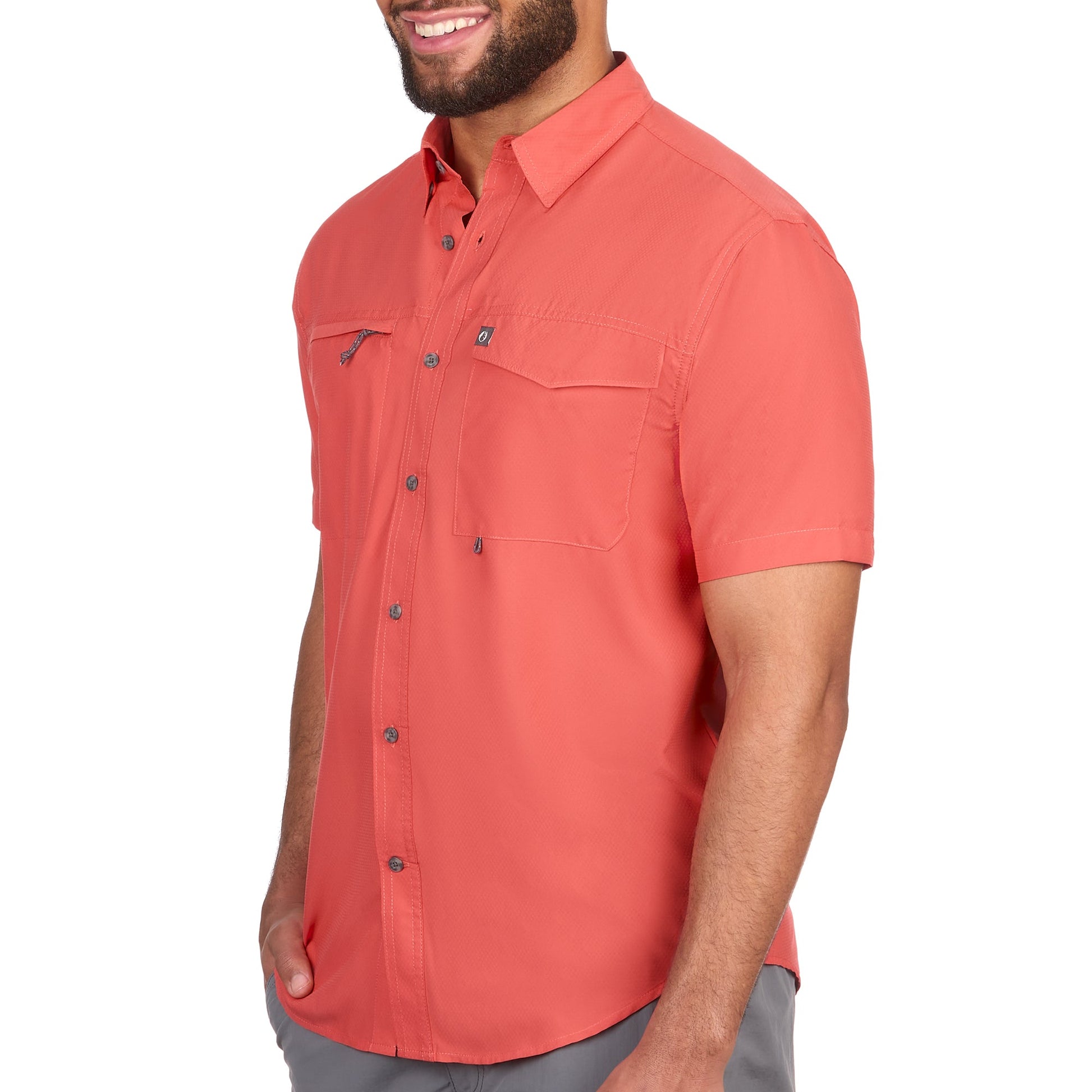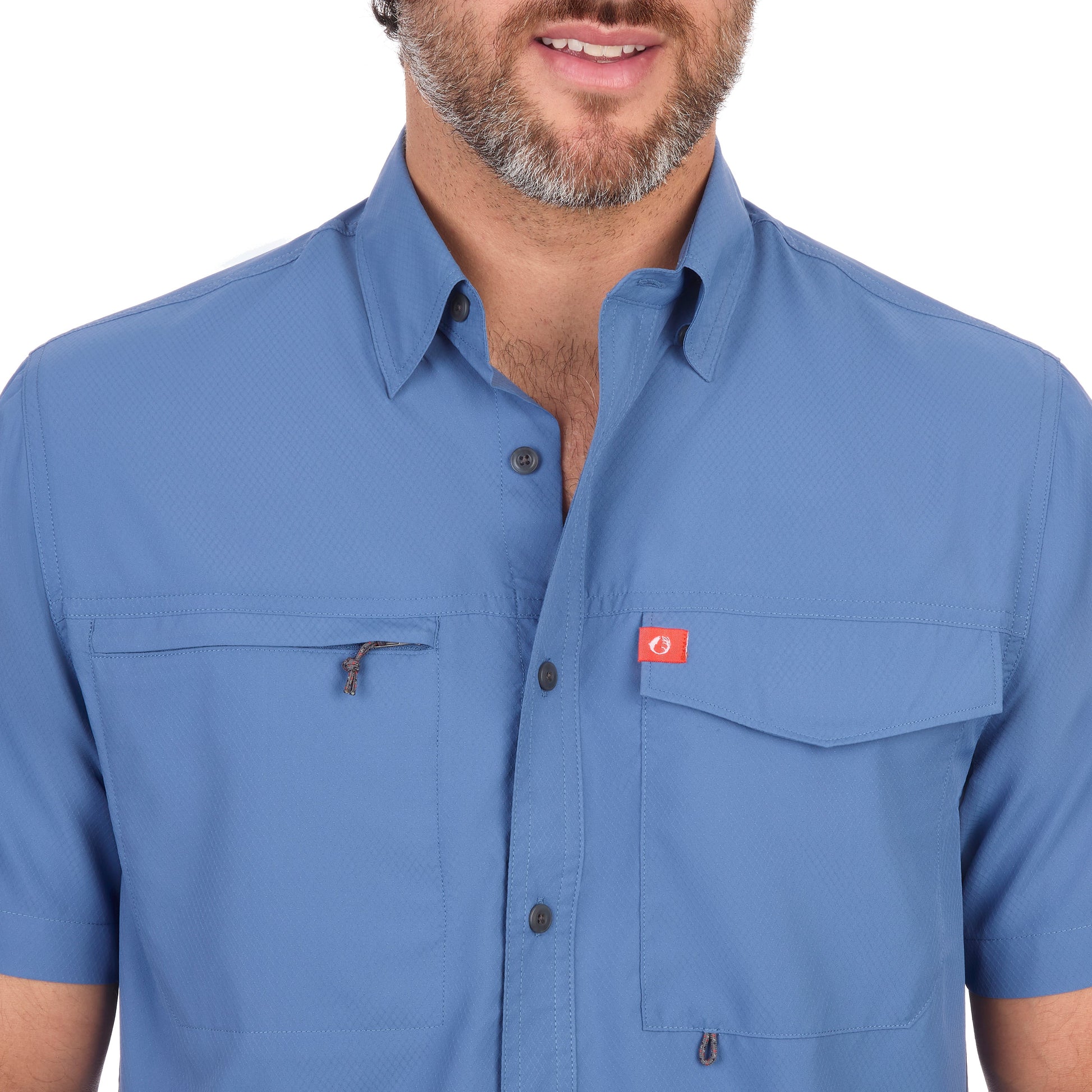 - Functional Design - Featuring a velcro enclosure chest pocket, zip chest pocket, glasses/utility loop, hidden button-down collar, plus a pleated back for extra mobility, all in a relaxed fit for maximum comfort.