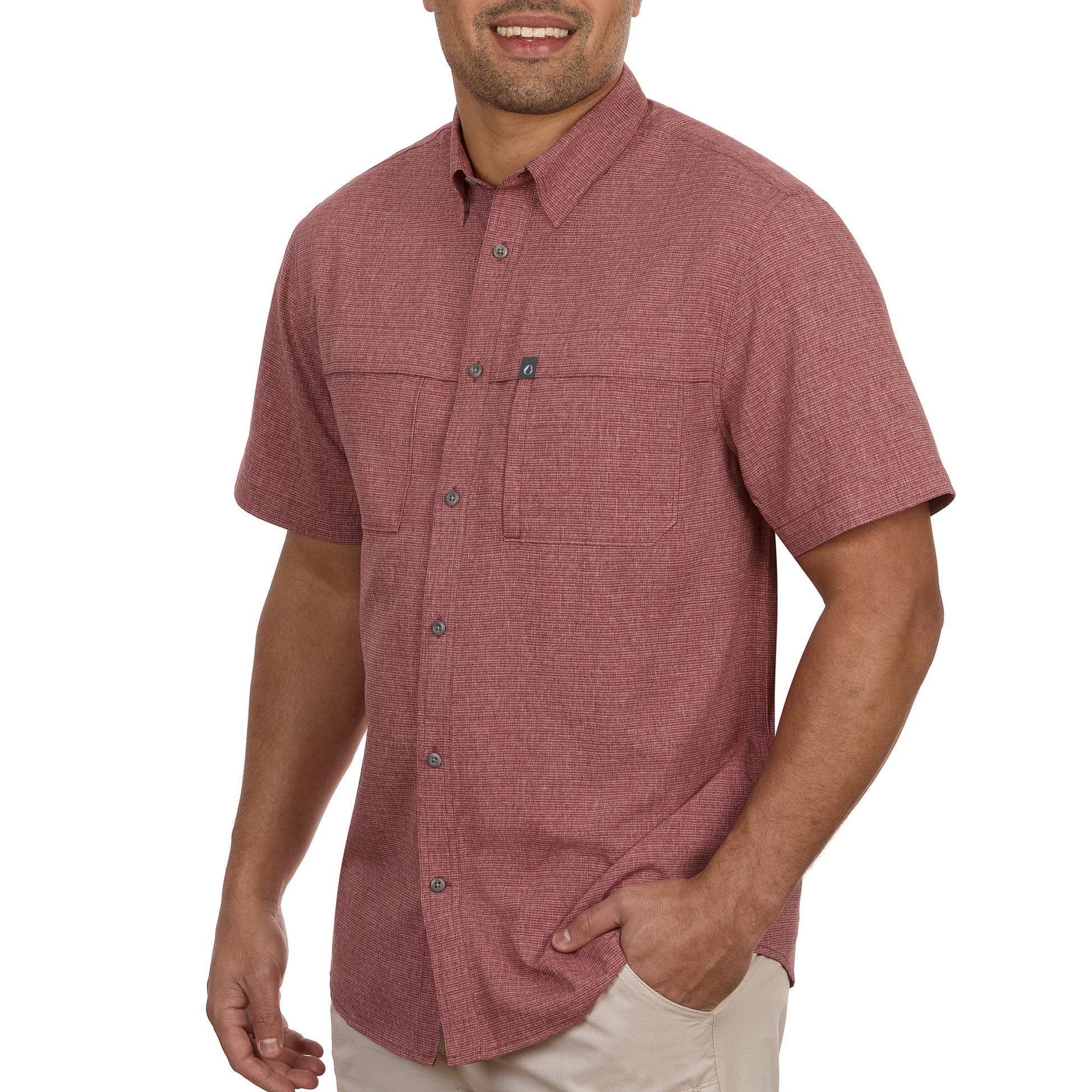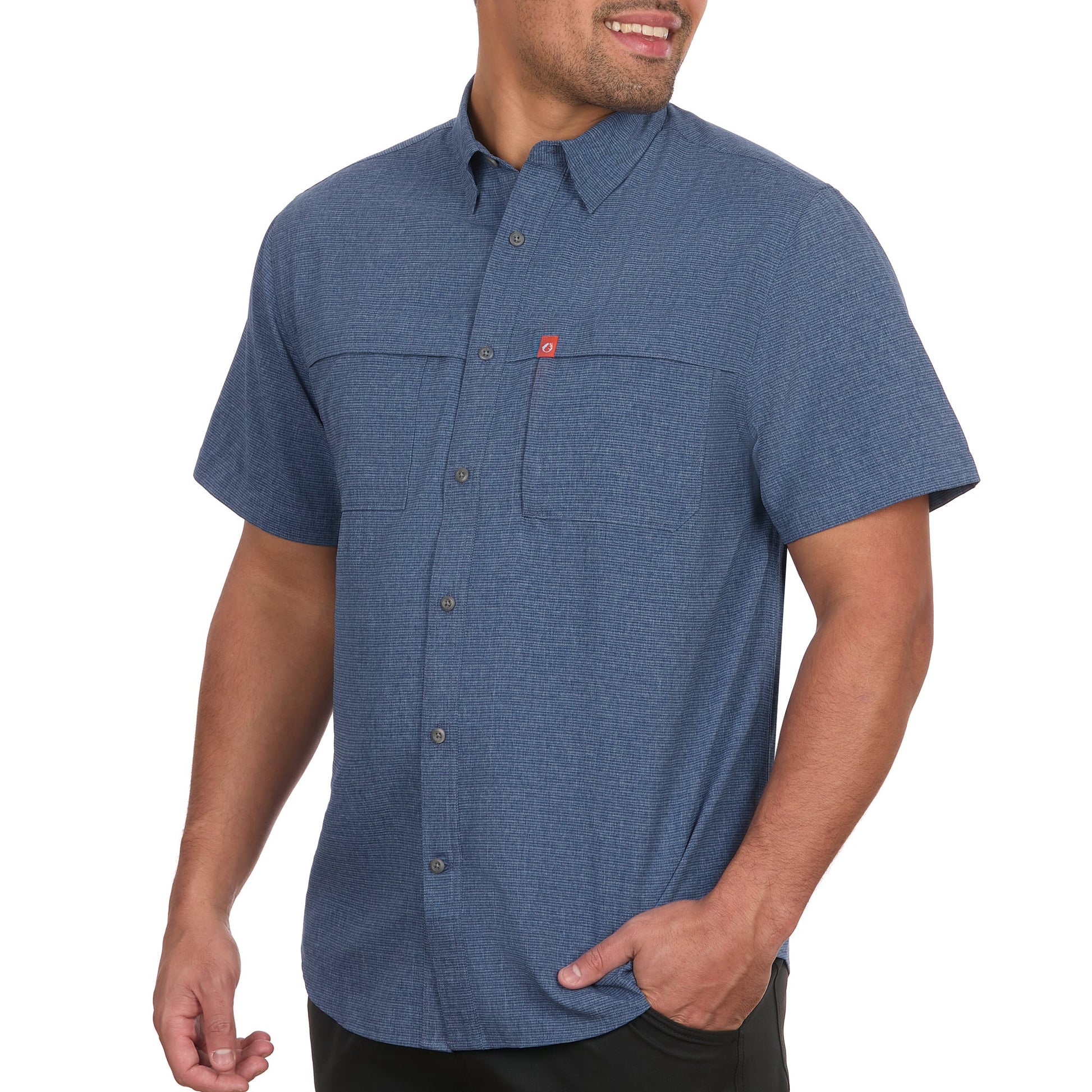 - Two velcro enclosure chest pockets, a zip chest pocket, a pleated back for extra mobility, plus a hidden button-down collar in a relaxed fit for maximum comfort.